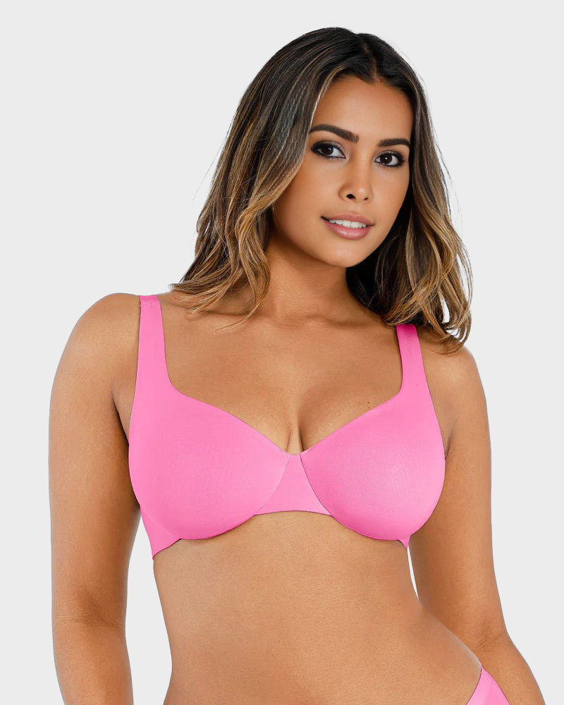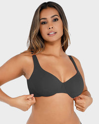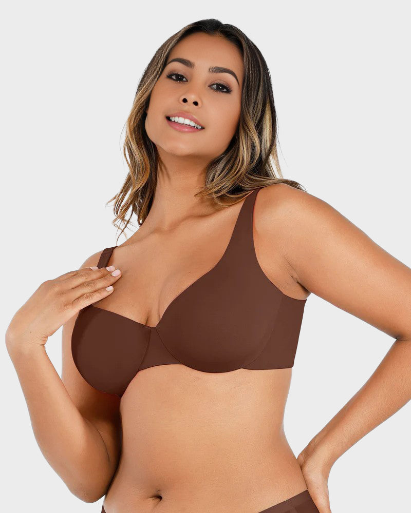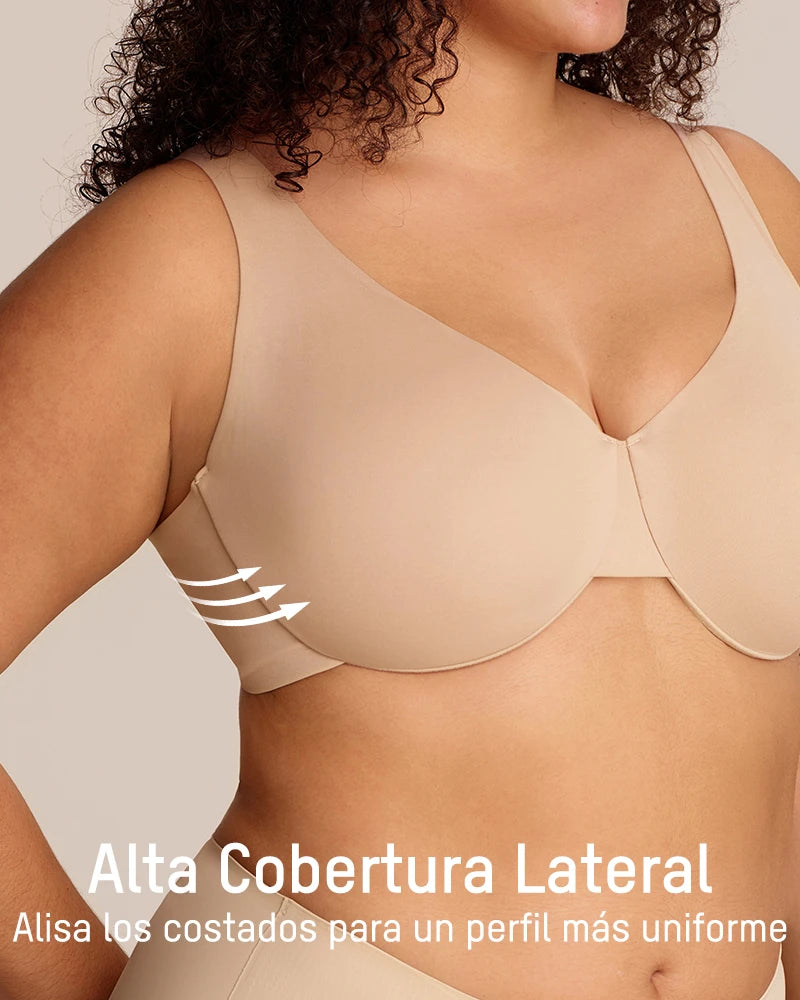 Los laterales elevados y las copas de cobertura total levantan y moldean suavemente mientras reducen los bultos laterales, creando una línea de busto más estilizada. Los tirantes anchos distribuyen la presión de manera uniforme para mayor comodidad, mientras que la espalda sin costuras garantiza un efecto de alisado. Perfecto para mujeres que buscan realce natural y soporte confiable durante todo el día.