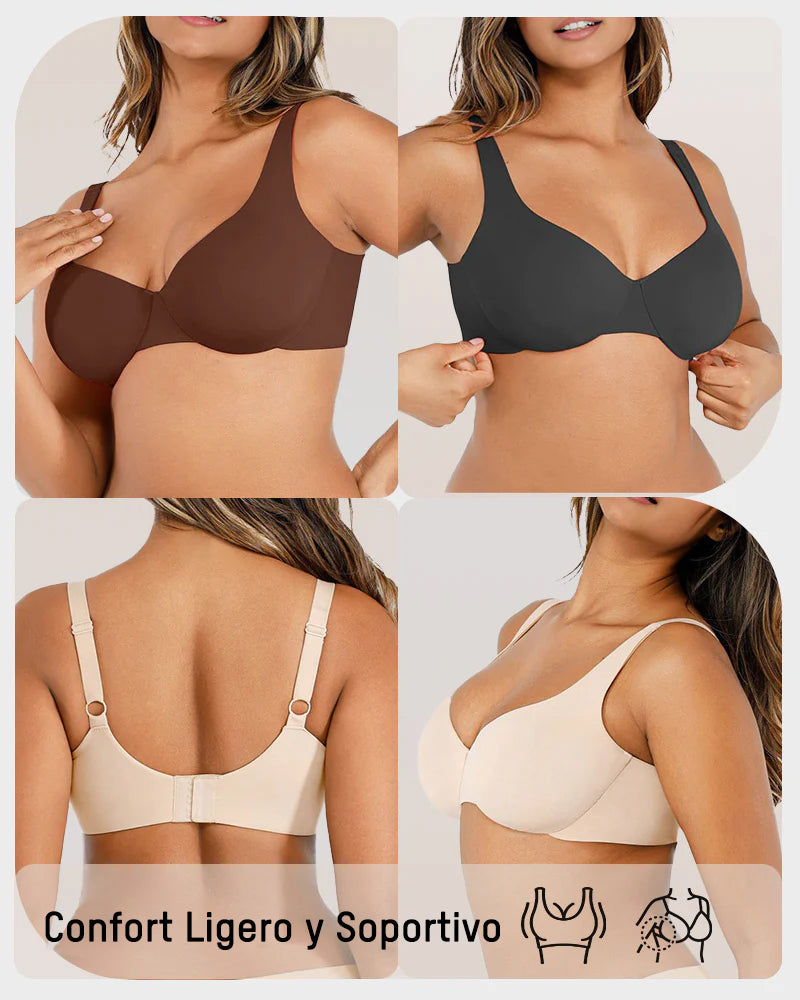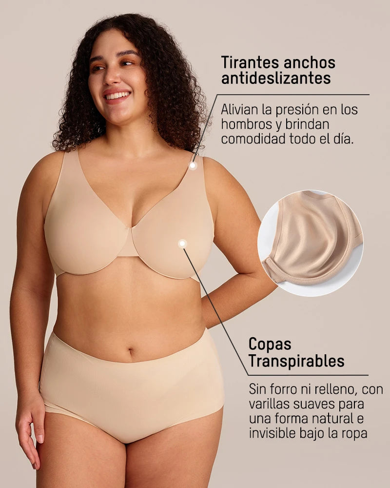 Descubre el sostén perfecto para bustos grandes: su tela ultradelgada y transpirable te mantiene fresca, mientras que el diseño de realce ofrece un soporte natural. Especialmente hecho para tallas grandes, minimiza sin presión, brindando un aspecto suave y sin costuras bajo cualquier prenda. Comodidad, confianza y elegancia en uno.