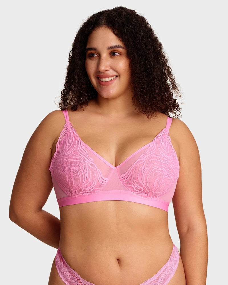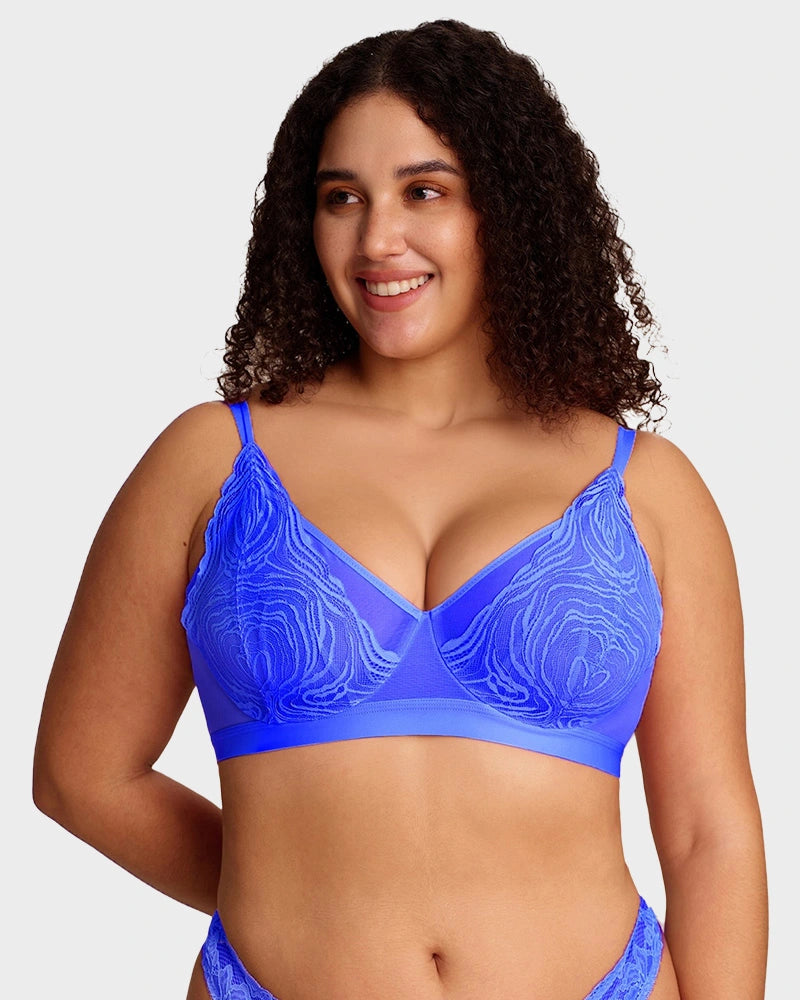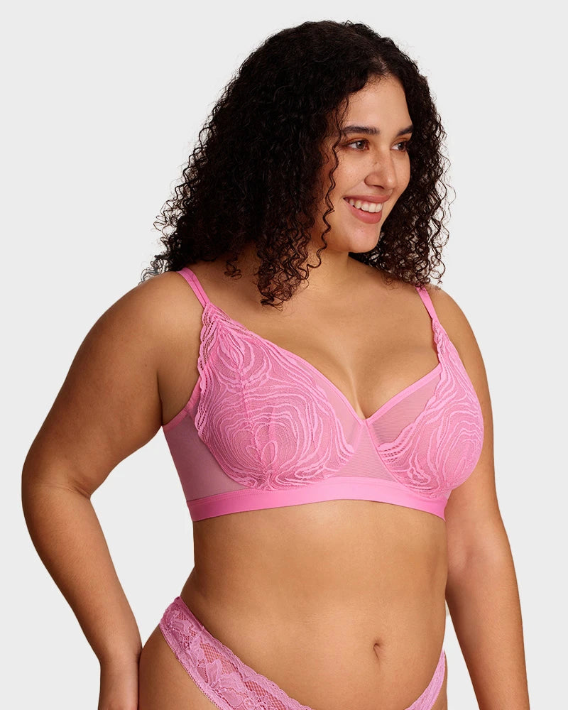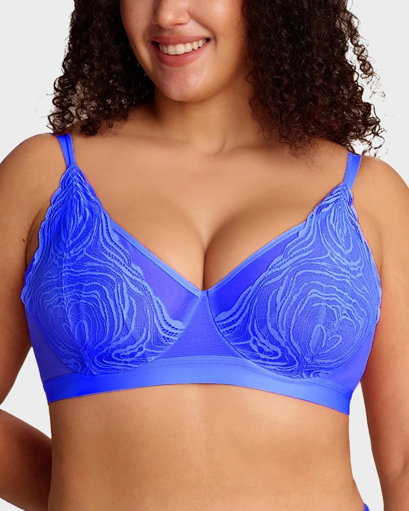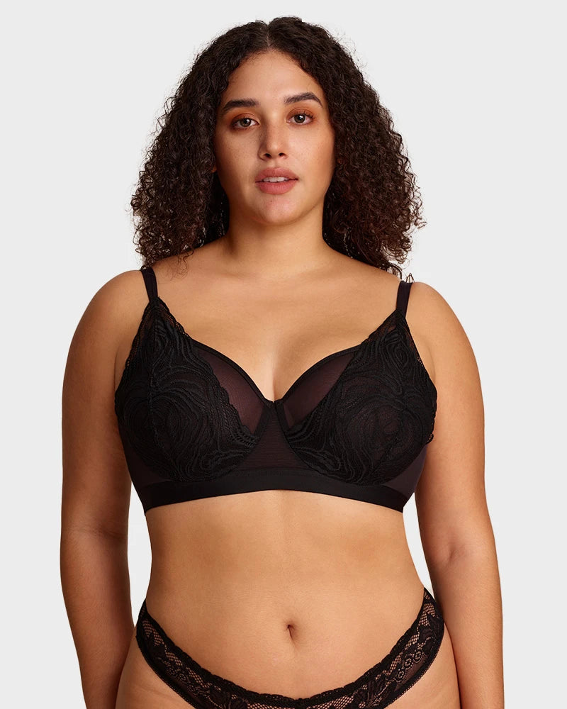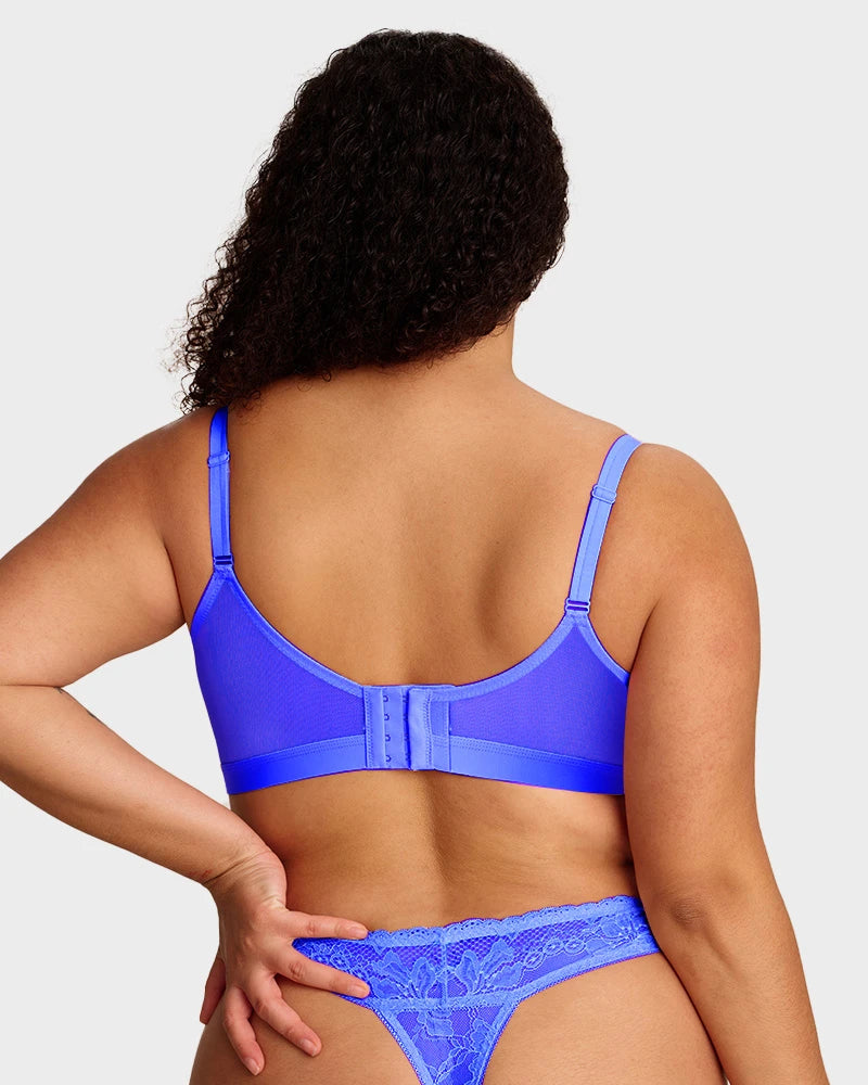 Con delicadas copas de encaje, construcción de malla de doble capa, una amplia banda inferior de soporte y un aro flexible, este sostén equilibra perfectamente estilo y funcionalidad. Levanta, define y brinda soporte de manera natural, mientras los tejidos transpirables te mantienen fresca. Ideal para la confianza diaria o para ocasiones especiales, es la combinación perfecta de elegancia y comodidad.