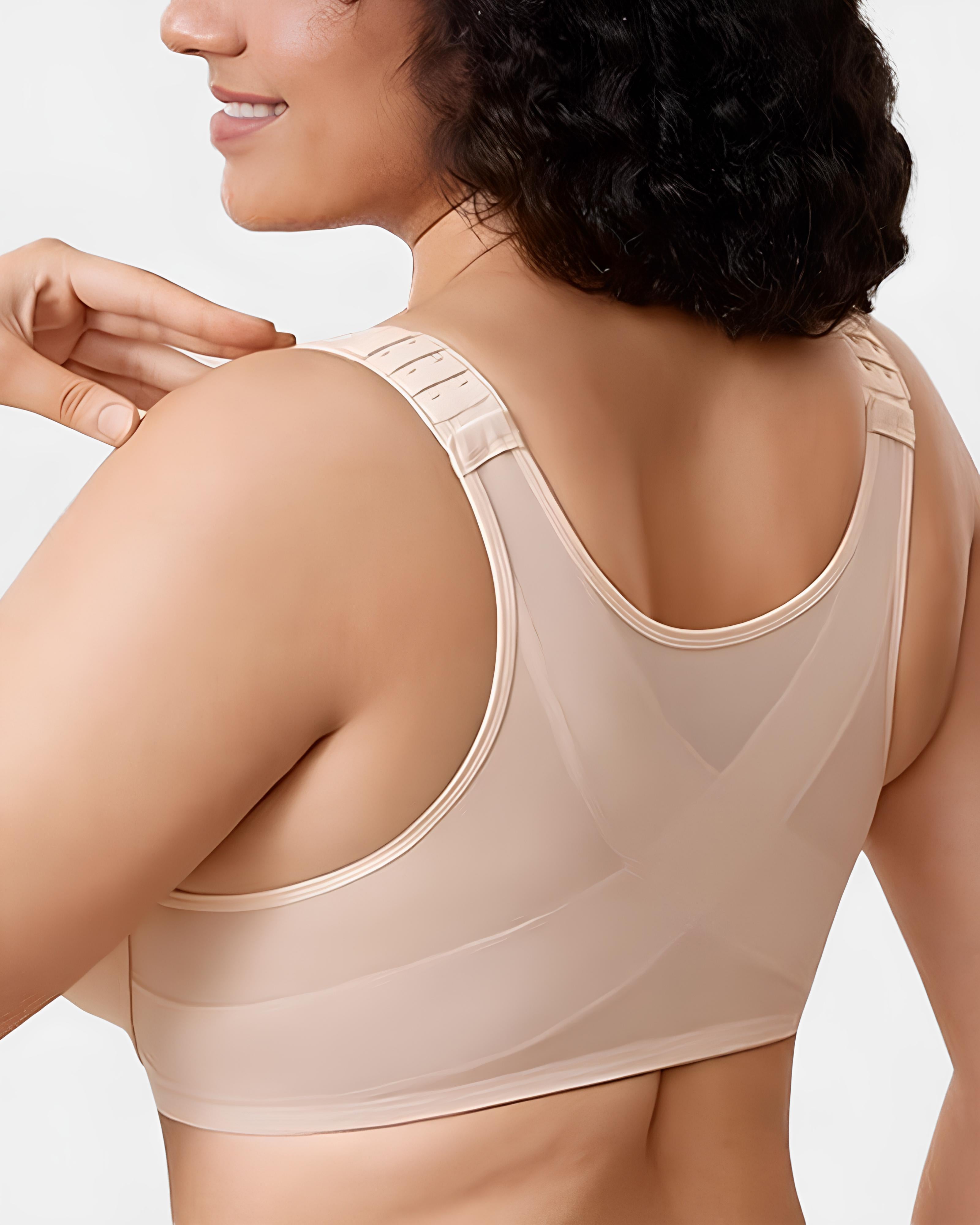 Olvídate de las complicaciones: el broche frontal facilita vestirte y crea un escote profundo que se mantiene invisible bajo la ropa.