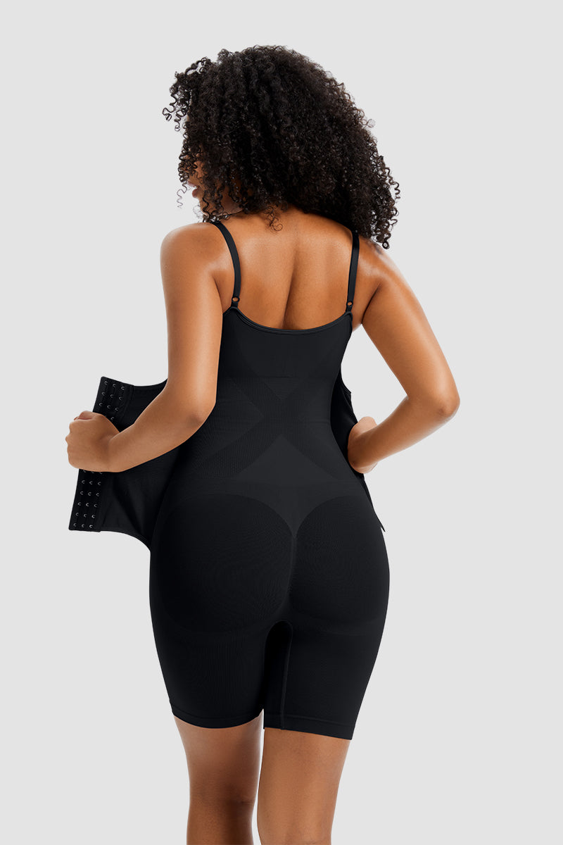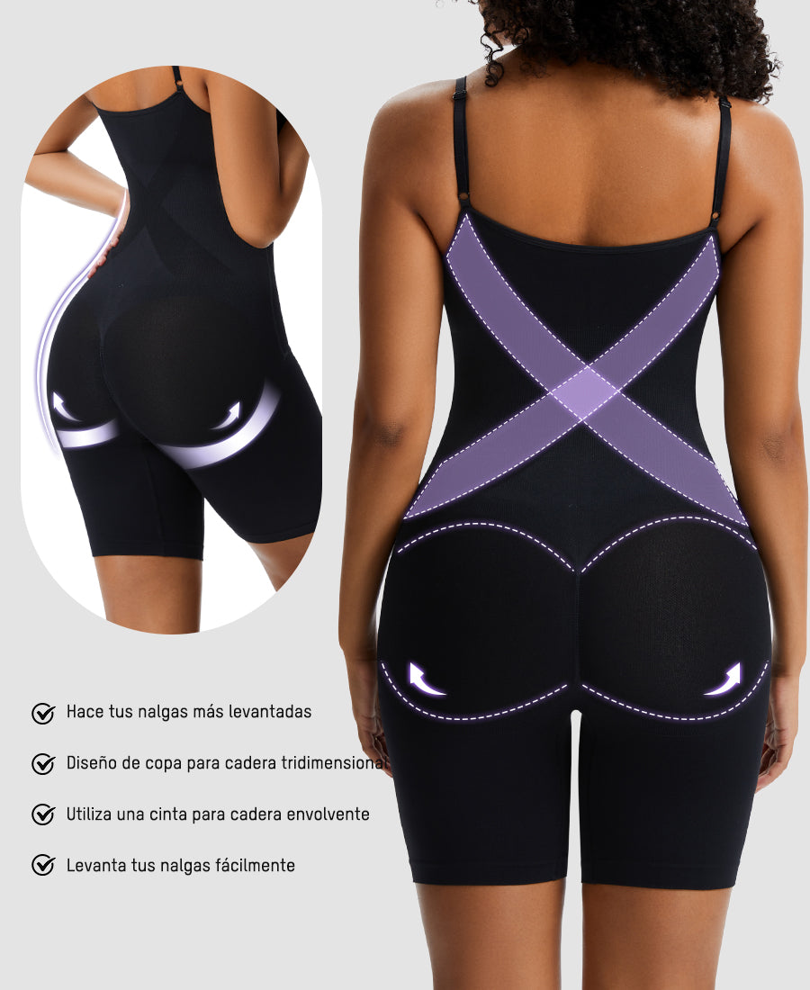 ¡Conoce tu impulso de confianza invisible! Este body de estilo short presenta una construcción sin costuras, tirantes ajustables y ganchos moldeadores para el vientre. Ultra fino pero potente, moldea sin marcar, perfecto bajo vestidos o jeans.